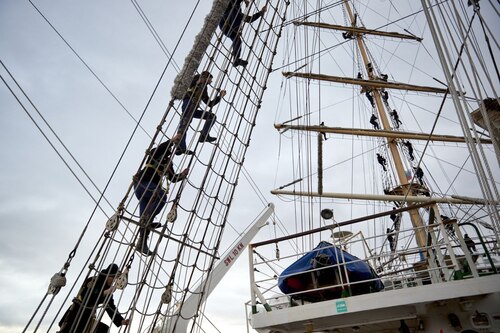 Практика у курсантов в этом году была насыщенной. Будущие моряки начали осваиваться, нести первые вахты и пробовать свои силы в постановке парусов уже в сентябре во время Восточного экономического форума, а сразу после его завершения —отправились в море по традиционному маршруту: вдоль берегов Сахалина, Курильских островов и Камчатки. Кроме того, фрегат обогнул Шантарские острова в Охотском море и зашел в бухту Врангеля.