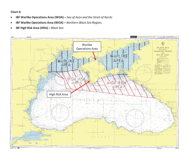 4. Зона боевых действий IBF – Азовское море и Керченский пролив севернее 45°03’ 00 северной широты (диаграмма 4). Действует до 25 мая 2026 года с возможностью продления.