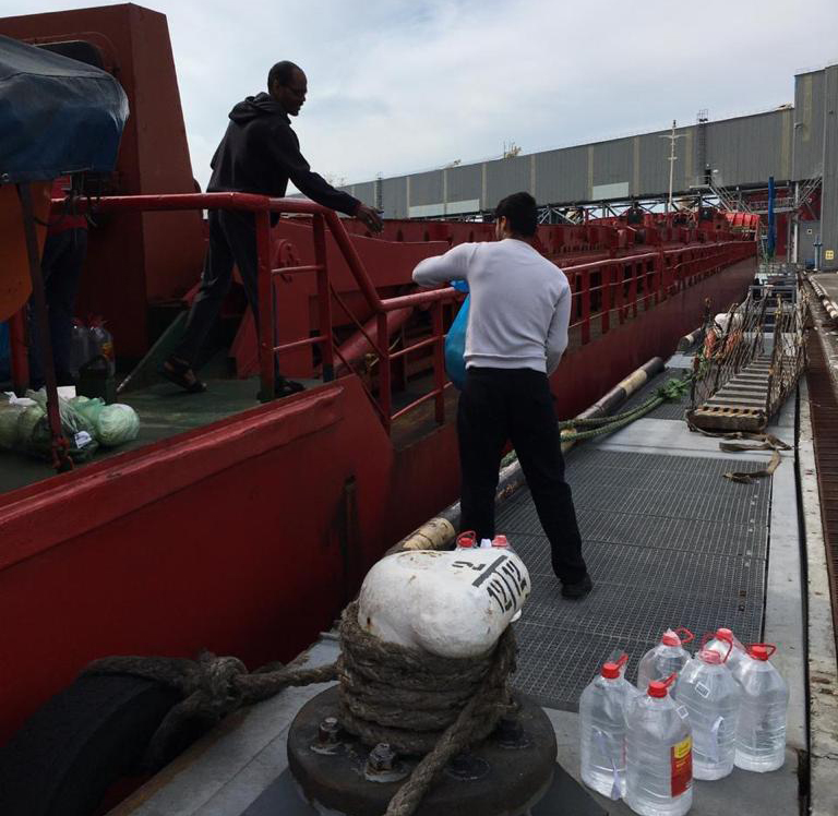 Буквально сегодня моряки сообщили, что полноценно не принимали пищу три дня, так как продукты, которые закупили на средства, выделенные РПСМ и МФТ, закончились. В частности, больше нет растительного масла, соли и воды для приготовления еды. Члены экипажа отметили, что написали об этом в компанию, но там ответили, что ничем помочь не могут.