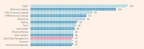 большинство в нем принадлежит наливным судам типоразмера Aframax, за которыми