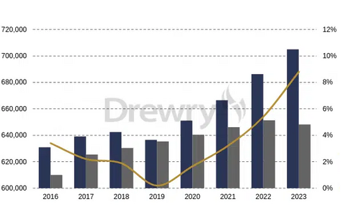 Согласно последнему отчету Manning Annual Review and Forecast, опубликованному международной консалтинговой компанией Drewry, дефицит в 2023 году увеличился до показателя, равного примерно 9% от общего числа действующих офицеров торгового флота, что представляет заметный рост по сравнению с прошлым годом, когда нехватка составила 5%. Дефицит достиг рекордно высокого уровня – улучшение ситуации не прогнозируется, что приведет к инфляции издержек на комплектование экипажей.